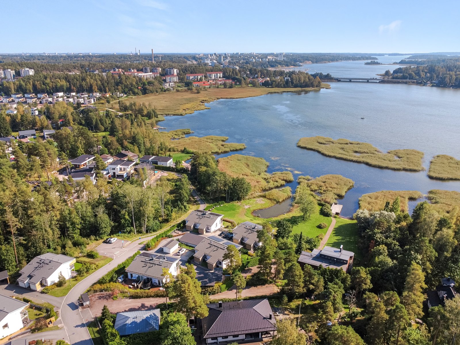 Saunaniemen merellinen ja rauhallinen sijainti luo lomatunnelmaa. Lisäksi Saunalahden lähipalvelut, koulu/päiväkoti ja sujuvat liikenneyhteydet ovat lähietäisyydellä.